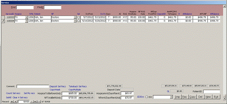 in: | ServiceID | Hospice | 20YrMo | Patient | NF | SvcTo ~ DepositID - PatientID | Comment | SEL |. The pipe