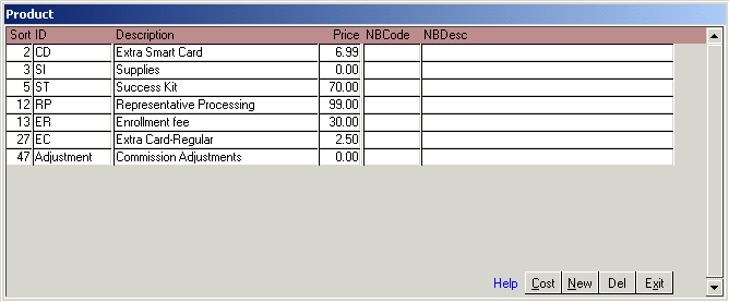 Maintain standard products for sale. Select from this list to fill invoice with description, price and dates of service.