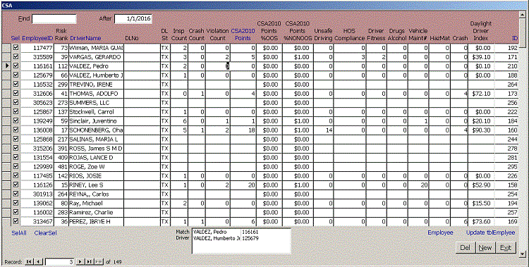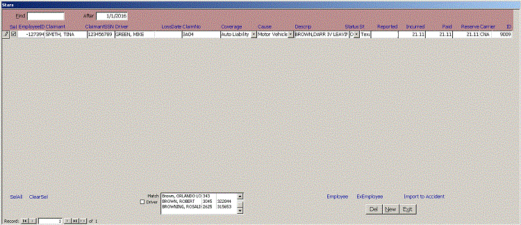 lookup. When you have made all the data corrections, click Update Employee to copy Sel recs to the Accident table.