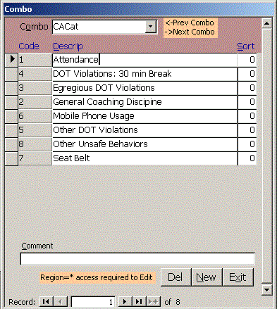 column. It is easy to use comments for special purposes such as help or groups in the Combo form.