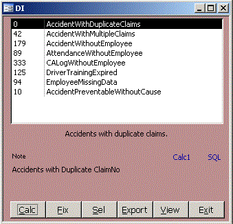 Click Calc1 to count the records found by this query or Calc to count records found for each data integrity query.