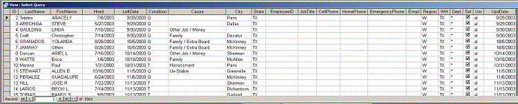Click Sel to Select the records found in the Employee table and open the Employee form with only the problem records