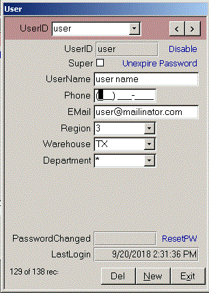 Select the Region, Warehouse and Department for the user. If you set the Department to *, the user