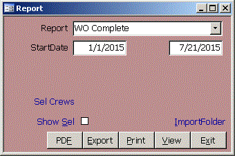 The Report form is a menu of reports for the system. Appropriate Text and Combo boxes appear when you