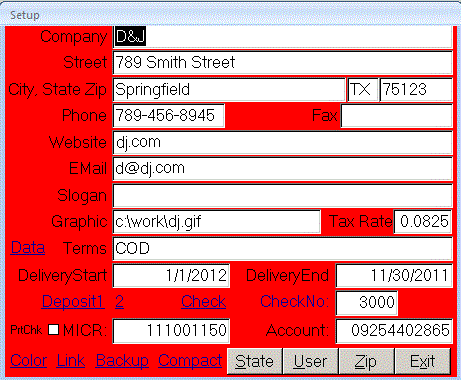 logo that will appear on invoices. CheckNo, MICR and Account are used on checks.