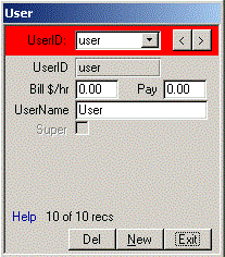 Click User to open the User form.
