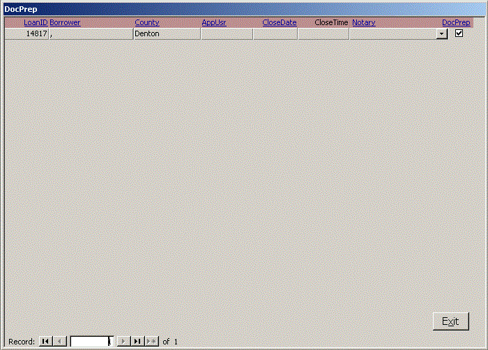 The Document Preparation form shows Closing Date and Notary for loans that have DocPrepReady. That means all affidavits are back from the county clerk and the loan has all information necessary to close Final Docs.