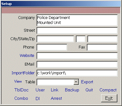 Click Setup on the Main menu to open the Setup form. Enter your Department info.