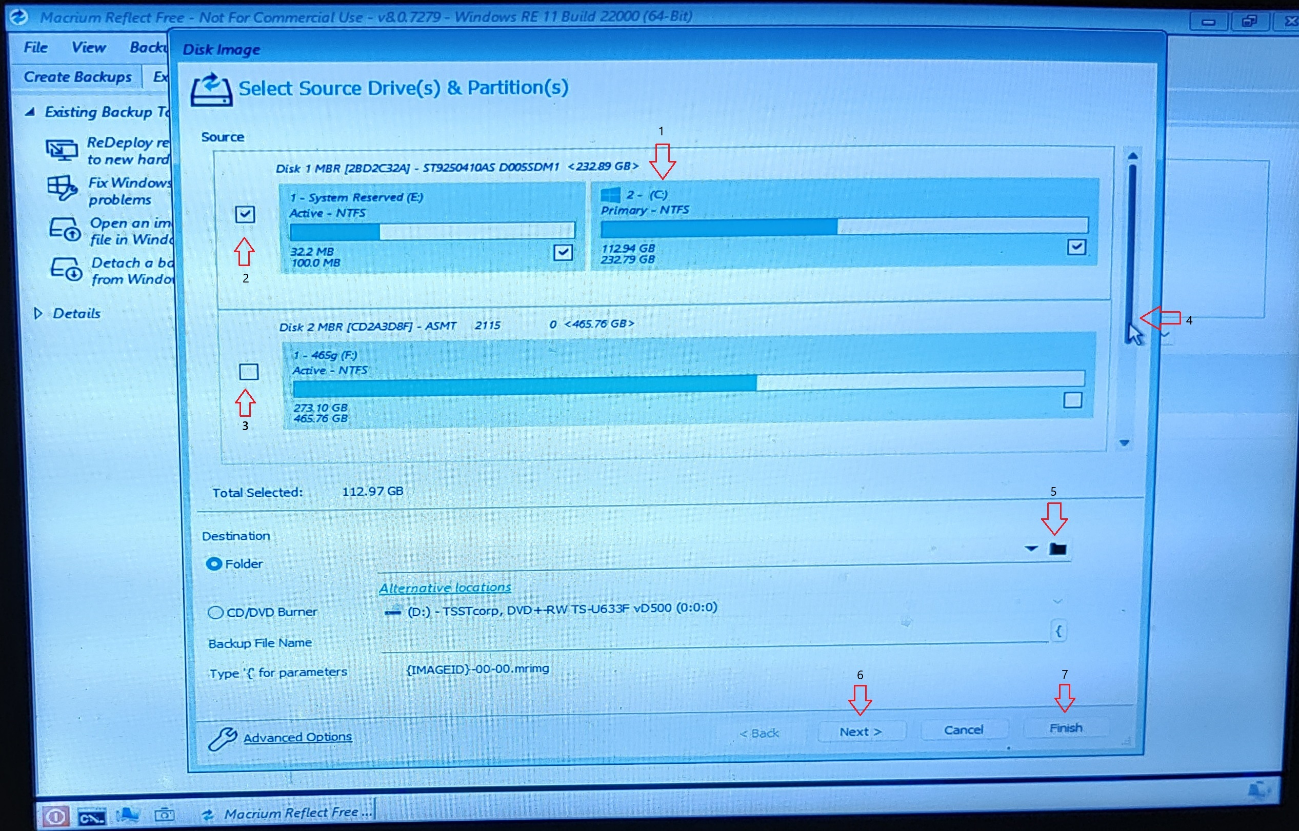 2. Make sure Source box is checked for disk that contains Drive C:.