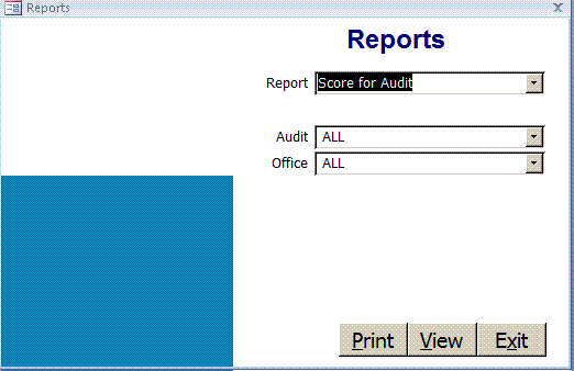 Scores are based on the weight and number of questions answered Yes. You can select one or all Audits and one or all Offices.