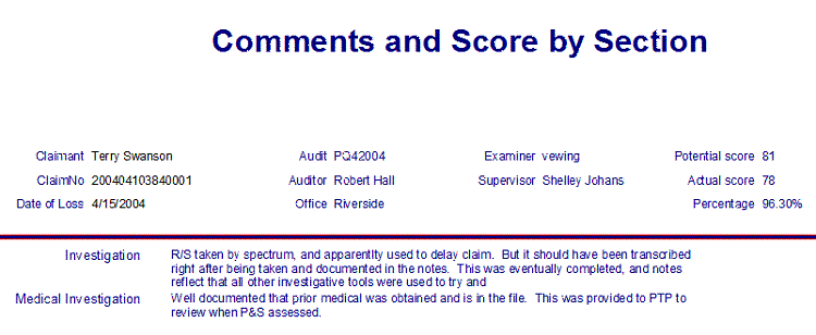 This lists the comments and score for questions grouped by section. You can select one or all audits,