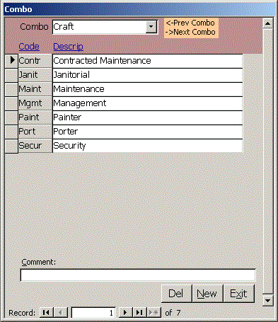 The Combo form lets you edit tables in your system that only have one or two fields without having to