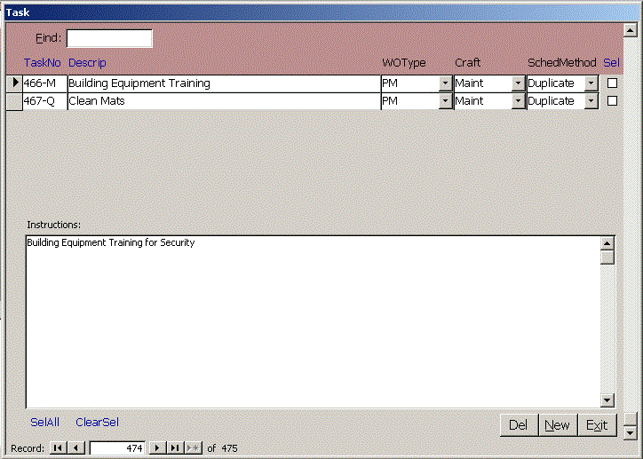 records where Sel is checked. Click the blue link (Task No, Description, Sel) to sort on that
