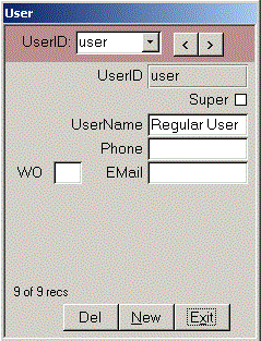 The User form lets the Super user add or edit users.