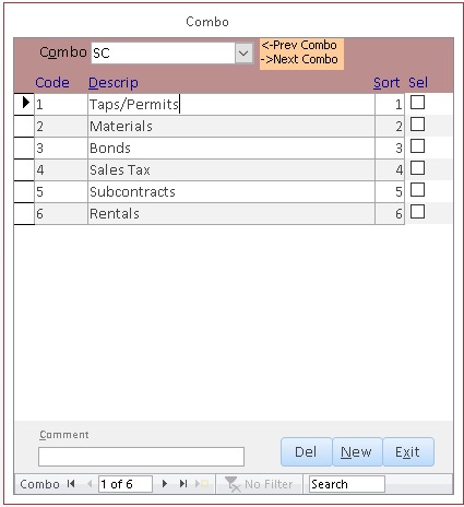 MC, Cat or SCthe Combo in the combo at the top of the form to edit the values. On the