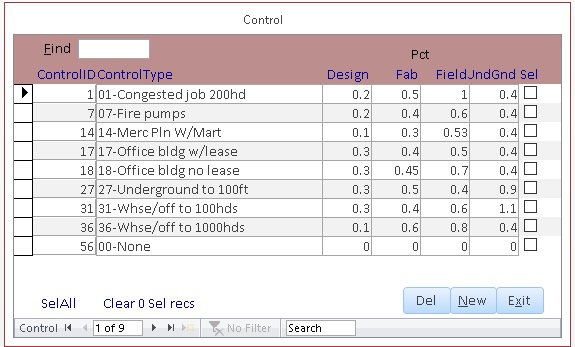 shows only estimates for that job. If you Edit Estimate from the Table combo,