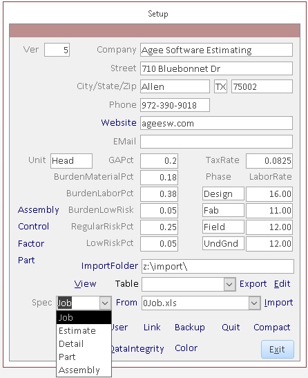 NOTE: Job, Estimate and Detail are related tables and must be imported in that sequence
