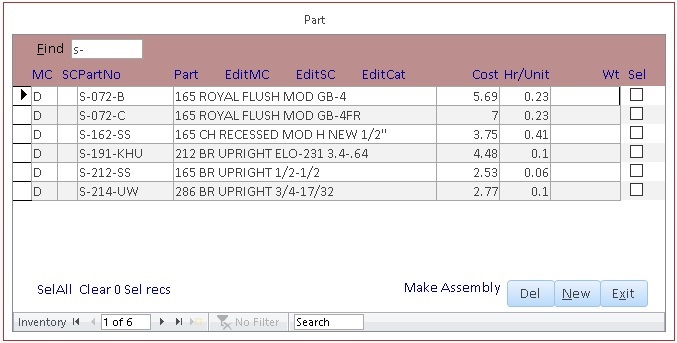 TIP: As you type the PartNo on the Detail form, the pointer will move within the list if the