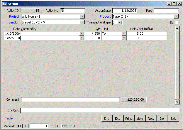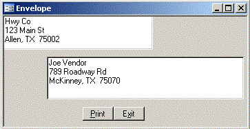 Click Env at the bottom of the Action form to open the Envelope form to address an envelope to the vendor.