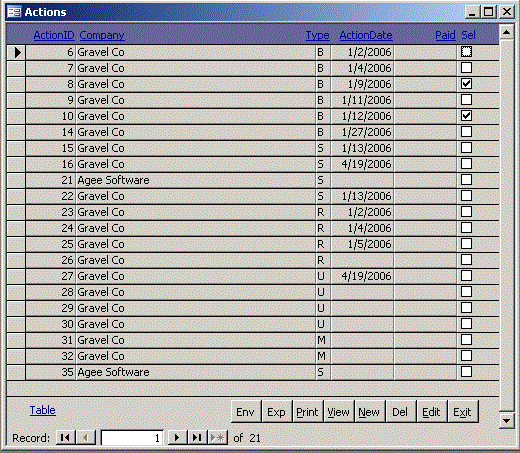 Click Action or press Alt-A from the Main menu to open the Actions form. Click ActionID, Company, Type,