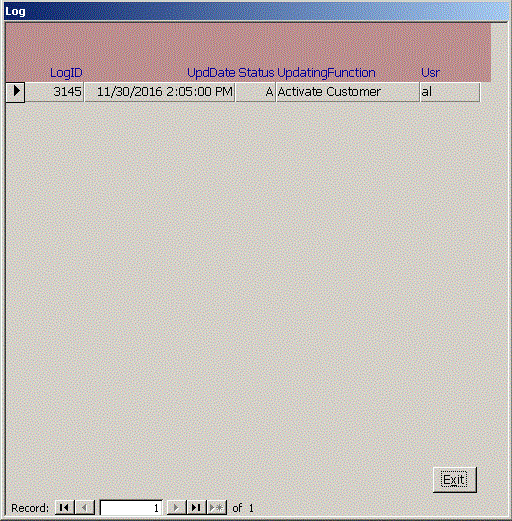 Find in | InstallID | LastName, FirstName | Builder | Phone | Phone2 | WorkPhone | Street | City | Zip | Comment | SEL |. Use the pipe symbol (vertical | bar) to separate multiple fields or mark the start or end of a field and reduce false hits. Find for |SEL| to see records where the Sel checkbox is checked. You can use wildcard characters in the Find box. ? matches any single character and * matches 0 or more characters. The record counter in the lower left of the form shows how many records you have found. Click the Find box to clear it and find all records again. SelAll sets the Sel checkbox in all records in the found recordset to true. Clear x SelRecs sets them to false. These features are additive so you could find for Dallas, SelAll, find for Fort Worth, SelAll and repeat the process Arlington, Fort Worth, Irving, Plano, Carrollton, Denton, Frisco, Grand Prairie, McKinney, Mesquite and Richardson to find the larger cities in the DFW metroplex. Similarly, you could find |Smith|, Clear x Sel Recs, find |Jones|, Clear x Sel Recs and exclude all whose last name was either Smith or Jones. If you don't mind also clearing 2013 BlackSmith Way, you could omit the pipe symbol delimiters. By entering keywords in the Comment field, you can quickly select marketing groups for your business. You can use the complex selections to create reports, export data, delete or edit records. You can't change InstallID, the auto number primary key, so it is grayed out. Phone has an input mask to show the phone number correctly and consistently. The blue Subdivision label for the Subdivision combo opens the Combo form so you can add or edit new values. When you pull down the combo box, the changes to the Combo table appear. By typing in the field, you can move to the first value in the combo that begins with the string you typed. Likewise, you can edit values Installer, Manufacturer, Route, Permit, Disposal or Compressor Type by clicking the blue link to the left of that combo. The blue Directions link opens Google Maps to show directions from the home office specified on the Setup form to the customer's street and zip. The blue Map link shows a Google map of the area. If you enter an exclamation point ! in the Comment field, it is highlighted yellow. This helps the user remember to ask a question while the customer is available. The Del button is reserved for users with Super user access. Del also delete related records in the Service, Log and Doc tables. It is easy to add a bulk delete feature to delete all Sel records or to add a password to restrict deletes to all but a few users. The blue Service, Log and Doc links at the bottom of the form show how many related records there are. If you click the link or press Alt and the underlined letter, like D for Doc, the related form opens with the recordset filtered to show only those records related to the current InstallID. If if a form is related to a parent form and that form isn't open, the New button will be disabled.